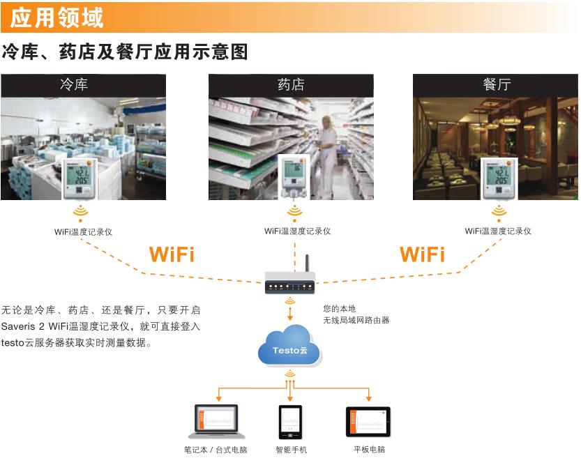 利用無線數(shù)據(jù)記錄儀testo Saveris 2-H2監(jiān)測倉庫、冷藏室和工作場所的溫度和濕度。將利用可連接探頭測得的溫度和濕度值可靠地記錄很長一段時間,并直接通過您的WiFi發(fā)送到德圖云(在線數(shù)據(jù)存儲)。通過具上網(wǎng)功能的智能手機、平板電腦或PC,溫濕度記錄儀怎么用,可隨時隨地檢索這些測量值。