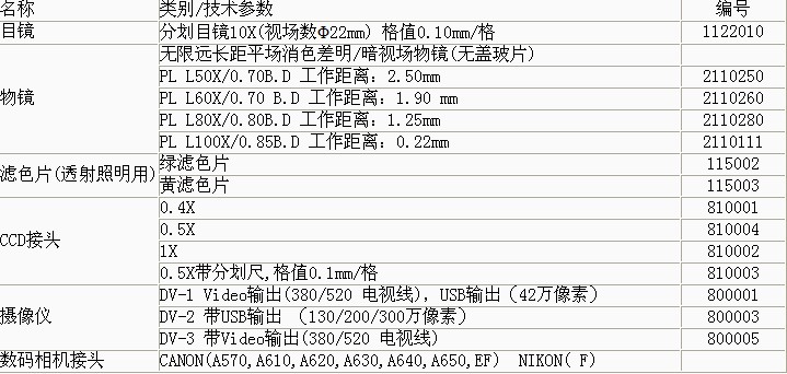 產(chǎn)品概述: 是一種多用途工業(yè)檢驗(yàn)用光學(xué)儀器,配置明/暗場物鏡、大視野目鏡與偏光觀察裝置,透反射照明采用“柯勒”照明系統(tǒng),,視場清晰。 功能特點(diǎn): 可用于半導(dǎo)體硅晶片、LCD基板、電路板、固體粉未及其它各種透明或不透明工業(yè)試樣的檢驗(yàn),是生物學(xué)、金屬學(xué)、礦物學(xué)、精密工程學(xué)、電子工程學(xué)等研究的理想儀器 技術(shù)參數(shù): ▲ 采用無限遠(yuǎn)光學(xué)系統(tǒng)及模塊化功能設(shè)計(jì)。 ▲ 長工作距離明/暗視場平場物鏡,視場大而清晰。 ▲ 廣角平場目鏡:視場直徑Ф22mm。 ▲ 粗微動(dòng)同軸調(diào)焦機(jī)構(gòu),粗動(dòng)松緊可調(diào),帶限位鎖緊裝置,微動(dòng)格值:2μm。 ▲ 內(nèi)置式可切換偏光觀察裝置,,起偏器可360°旋轉(zhuǎn)。 ▲ 上光源采用翻蓋式12V50W鹵素?zé)粝洌?span id="ox1adoldj3" class="wd3017">,更換燈炮安全便捷,下光源采用12V30W鹵素?zé)簦友b散熱片。 ▲ 三目鏡筒可自由切換目視觀察與顯微攝影,攝影時(shí)可100%通光,適合暗視場顯微圖像拍攝。 基本配置: