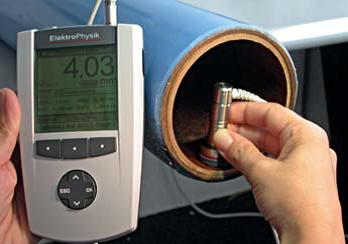 重現(xiàn)性 讀數(shù)的可靠性主要取決于讀數(shù)的重現(xiàn)性。電磁干擾是最普遍的導致誤差的根源,所以保護測量系統(tǒng)和探頭電纜免受這些干擾非常重要。 跟傳統(tǒng)技術不同,SIDSP®在探頭內部產生和控制激發(fā)信號;貍鞯男盘栔苯舆M行數(shù)字轉換和處理從而提供測量厚度值。厚度值通過探頭電纜數(shù)字化傳輸?shù)斤@示裝置,也就是說:在這種情況下模擬測量系統(tǒng)的信號傳輸過程中沒有更多干擾。即使您的測量工件需要特別長的電纜線也沒問題,加長的電纜線同樣具有極強的抗干擾能力。 EPK 的SIDSP®探頭具有極高的重現(xiàn)性。將探頭放在同一測量點測量幾次,每次您都可以得到基本一樣的結果,再次證明了SIDSP®探頭的優(yōu)秀性能。