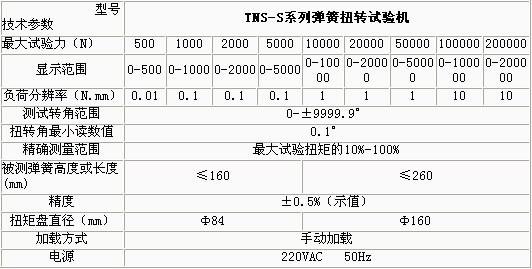 產(chǎn)品概述: TNS-SL系列彈簧扭轉(zhuǎn)試驗機主要用于各種扭簧、蝸卷彈簧、彈簧元件和摩擦機構(gòu)的扭轉(zhuǎn)角、扭轉(zhuǎn)力矩的測試。 功能特點: 該系列彈簧試驗機的扭轉(zhuǎn)扭矩、角度為數(shù)字顯示、角度測量采用角位移傳感器(光電編碼器)、可以對扭矩傳感器的角位移量作自動修正、該扭轉(zhuǎn)試驗機還具 有峰值保持、過載保護、剛度計算、結(jié)果打印、數(shù)據(jù)查詢等功能、手動加荷,空氣彈簧試驗機廠家,左右旋隨意選擇、結(jié)構(gòu)緊湊,彈簧試驗機廠家,操作簡單,彈簧試驗儀,檢測速度快、測量時試件水平放在兩扭矩盤之 間 技術(shù)參數(shù):