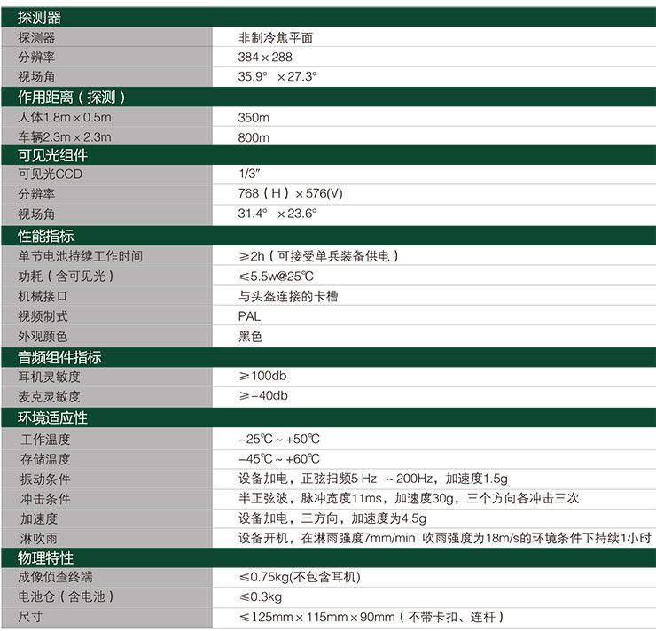 產(chǎn)品特點(diǎn) 多傳感器集成 集可見(jiàn)光、紅外、音頻于一體,民用紅外熱像儀,能在夜間及惡劣氣象條件下輔助單兵進(jìn)行偵察