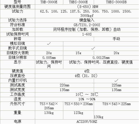 產(chǎn)品概述: 時代THB-3000D電子加載布氏硬度計(jì) 時代THBS-3000D液晶數(shù)顯布氏硬度計(jì) 時代THBS-3000DA直讀數(shù)顯布氏硬度計(jì) 功能特點(diǎn): THB-3000E最新的C++語言編制程序+壓力傳感器CPU控制系統(tǒng),布氏硬度 hbs,大幅度提高硬件在運(yùn)行中的可靠性和穩(wěn)定性,動態(tài)力值波動小于1/1000, 確保力值更精確,布氏硬度計(jì) 英語,示值更穩(wěn)定,萊州華銀布氏硬度計(jì),具有良好的可操作性和人性化,king布氏硬度計(jì),布氏試驗(yàn)力:十級。 THBS-3000E采用LED液屏菜單顯示:硬度值.、測試力、保荷時間、動態(tài)顯示加荷、保荷和卸荷全過程,采用數(shù)字編碼器測量方式,可直接將實(shí)驗(yàn)結(jié)果在屏幕顯示,金屬布氏硬度計(jì)檢定規(guī)程,無須查表、無須手動輸入。 HBS-3000DB獨(dú)一無二的雙核閉環(huán)控制系統(tǒng),布氏硬度計(jì)hbc,16位模數(shù)轉(zhuǎn)換器,確保力值精確性和示值穩(wěn)定性數(shù)字信號輸出,確保力值精確性、示值穩(wěn)定 性,龍門布氏硬度計(jì),100組超大容量數(shù)據(jù)存儲庫;采用數(shù)字編碼器測量方式,布氏硬度計(jì)校準(zhǔn),可直接將實(shí)驗(yàn)結(jié)果在LED大屏幕顯示,數(shù)顯硬度儀,在待機(jī)模式時,布氏硬度,快速查看歷史和當(dāng)前的測量次數(shù)與結(jié)果。 技術(shù)參數(shù):