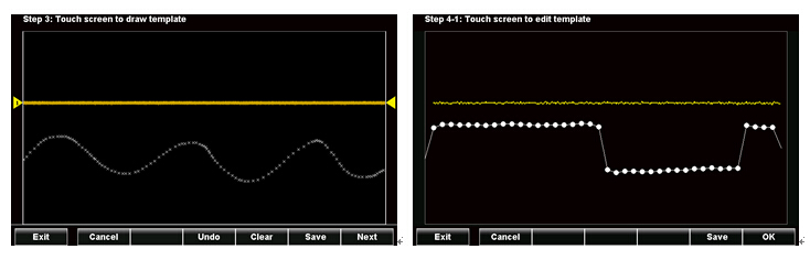 許多的元件或系統(tǒng)制造業(yè)者在做質(zhì)量管制或是出貨生產(chǎn)時,需要良品與不良品的報告分析。GDS-300/GDS-200系列示波器依然保有固緯示波器原有GO/NOGO的功能,可以根據(jù)量測的波形,建立相對應(yīng)的波形模板,以進行通過與非通過的結(jié)果計算。除此之外,此示波器亦可進行模板自我編輯的功能,虛擬示波器代碼,使用者可以根據(jù)測試或環(huán)境條件來任意編輯模板之型態(tài),亦可訂立不同之上下界模板,使得GO/NOGO的功能更加多元化以及人性化。