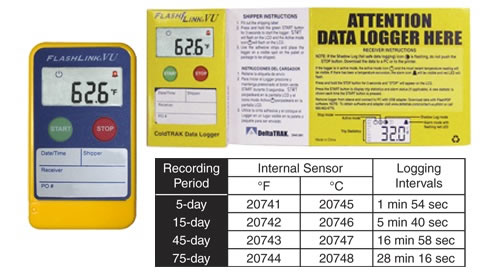 新 推出的FlashLink VU是記錄溫敏產品儲存和運輸環(huán)境條件的理想儀器。這款運輸途中數據記錄儀有一個大而容 易閱讀的液晶顯示屏,能夠提供即時的溫度信息和統(tǒng)計數據,包括行程中的溫度上下極限、溫度超標的累積時間、最高溫度、最低溫度和平均溫度。 FlashLink VU無需停止或下載記錄儀就能獲取溫度數據。即使是經營者不啟動數據記錄儀,其專利的影子記錄?功能也能保證歷史溫度數據的獲取。一次性使用的 FlashLINK VU包裝在一個附有簡便易行的使用說明,可見度極高的黃色紙盒內,幫助收貨方很快在貨堆里找到數據記錄儀。 DeltaTrak’s FlashLink VU Logger 是記錄儲存和運輸溫度敏感產品溫度的理想設備。