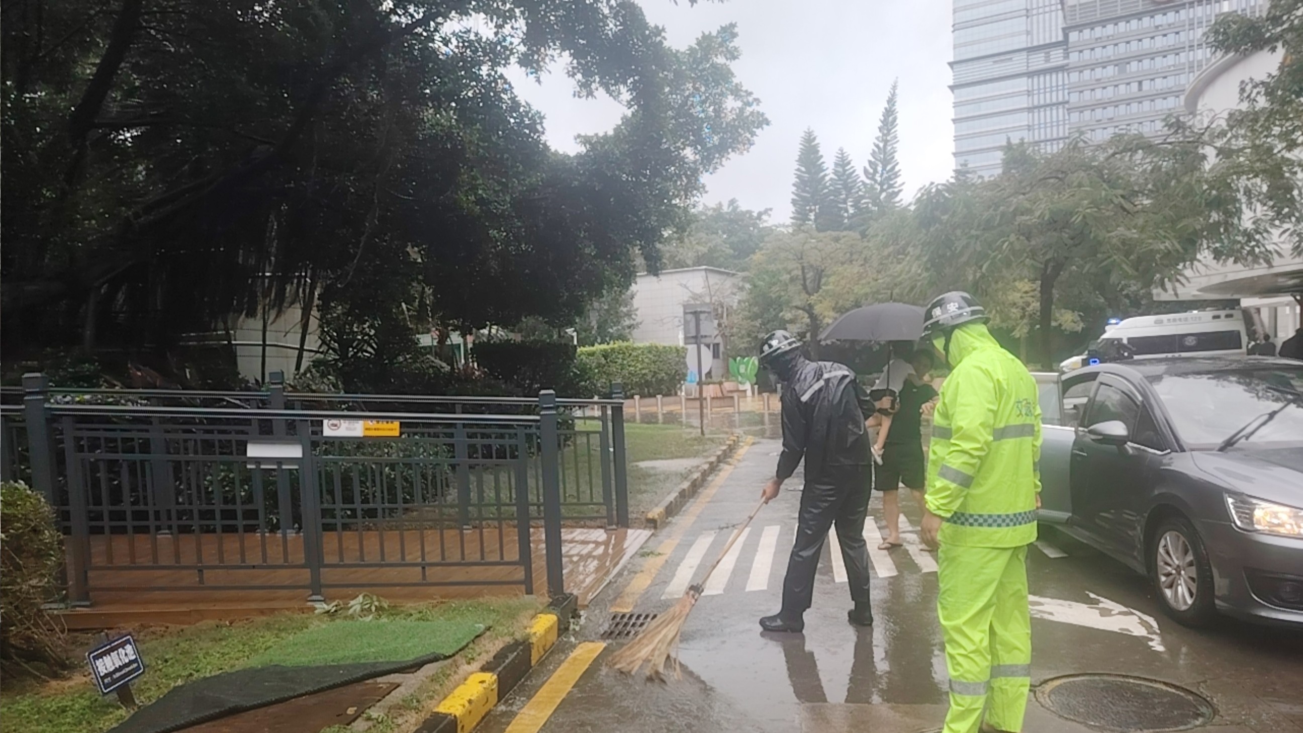在深圳市兒童醫(yī)院,特發(fā)服務團隊針對重點防汛部位提前布置防汛沙袋等物資,對主要出入口設施進行加固,并對電力系統(tǒng)開展全面隱患排查,最大限度降低臺風可能帶來的影響。臺風過后,工作人員立即投入清理工作,重點疏通下水口,防止落葉堵塞造成路面積水,確保醫(yī)療服務環(huán)境安全有序。