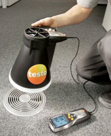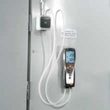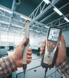 用于管道測量的流速傳感器都帶有伸縮桿,,便于在大型空氣管道中進行操作。如果需要,還可以使用測量流速的探頭來測量溫度和濕度。可以根據(jù)應用需求選擇熱敏探頭、葉輪探頭或皮托管來測量管道中的流速。 測量室內空氣質量(二氧化碳)![]() 高濃度的二氧化碳會導致室內空氣質量變差,從而使人體感覺疲倦,無法集中精神,甚至生病。因此,為了保證良好的室內空氣質量,二氧化碳濃度一般不應超過1 000 ppm。參考范圍為700到1500 ppm。 IAQ探頭(訂貨號0632 1535)尤為適合監(jiān)控室內空氣質量。此探頭可以同時記錄二氧化碳濃度、溫度和相對濕度。 在通風管道內使用皮托管進行測量為了確保通風和空調系統(tǒng)的正常功能,對通風管道內的空氣流速進行檢測是非常重要的。 testo 435-3的內部壓差傳感器用來測量高流速或高污染的氣流,皮托管測量范圍從0到64米/秒的空氣流速。testo 435-3可以同時顯示壓力、流速和體積流量。 在儀器背后的磁貼可以實現(xiàn)免提操作。 過濾器上壓差測量![]() 空調系統(tǒng)配有過濾器,可以防止室外空氣中的灰塵進入室內。應定期檢查這些過濾器,以確保它們運行良好。為此,,需要測量過濾器前后的壓力差。如果壓差過大,說明過濾器被污染,需要更換。 testo 435-3內置壓差傳感器,測量范圍0到25 hPa。在壓差測量過程中會進行溫度補償,以得到精確讀數(shù)。在儀器背后的磁貼可以實現(xiàn)免提操作。 熱輻射的測量![]() 多功能測量儀testo 435能夠幫助您可靠地測量熱舒適度。連接一個熱輻射黑球探頭(訂貨號0602 0743),測量輻射熱量(也就是有效或感知溫度)。熱輻射黑球探頭測量的有效溫度與人體感知溫度的差值最好不超過± 0.41 K。 室內溫度(空氣溫度和有效溫度)的測量要采取在同一個地方,相同的條件,如室內空氣流速的一致的情況下進行。 測量空氣和表面溫度為了讓人體感覺舒適,達到最佳狀態(tài),房間內必須調節(jié)空調運行工況。除了建筑結構因素和個體感覺,以下因素也會在很大程度上影響室內空氣的舒適度:室內空氣溫度以及墻壁、窗戶、底板和天花板的表面溫度。 testo 435提供滿足不同應用的熱電偶探頭。表面探頭(訂貨號0602 0393)和空氣濕度探頭(訂貨號0636 1712)很適合分析結露問題和霉變的情況。 出風口風速測量![]() 為了確保系統(tǒng)的高效使用,每個管道的進出口體積流量都應符合要求,,這是一個基本的前提條件。 在出風口處,,適合采用直徑100mm的葉輪風速探頭來測量體積流量(訂貨號0635 9435),因為它們可以對較大面積的流速進行綜合測量,從而排除通風格柵所產(chǎn)生的干擾(回路方法)。 在空氣格柵和提升閥的抽風口或出風口進行測量時,適合采用我們的風量罩套裝(訂貨號0563 4170)以及直徑100mm葉輪風速探頭(訂貨號0635 9435)。通過風量罩來記錄整體體積流量值,不需要根據(jù)流速和面積進行計算。這種流量測量方法簡單、可靠。 一氧化碳測量![]() 一氧化碳(CO)是一種無味、無色、無刺激性的氣體,但是有毒。它是在熱源和燃機內的煤、木頭、油、天然氣等含碳物質燃燒不充分情況下產(chǎn)生的。一氧化碳濃度增加速度很快,尤其是在沒有足夠氧氣的情況下,并可能對健康產(chǎn)生不良影響。 即使環(huán)境空氣中含有微量的一氧化碳,環(huán)境一氧化碳探頭(訂貨號0632 1235)和testo 435-1也能夠檢測到。