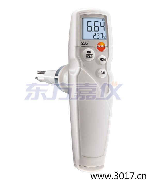 testo 205儀器套裝:?jiǎn)问謕H/°C 測(cè)量?jī)x器,帶刺入式探頭,儲(chǔ)存帽,酸度,保護(hù)套和固定夾。