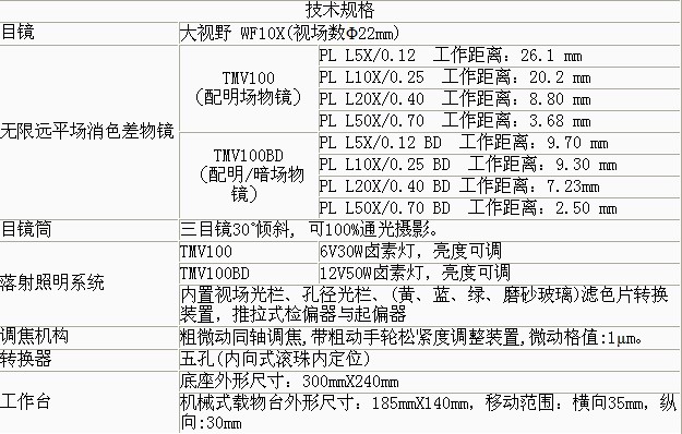 適用于對(duì)工件表面的組織結(jié)構(gòu)與幾何形態(tài)進(jìn)行顯微觀(guān)察。 功能特點(diǎn): 適用于不同厚度工件檢測(cè)。機(jī)械移動(dòng)式載物平臺(tái)可有效定位工件觀(guān)察部位。調(diào)焦機(jī)構(gòu)采用圓柱滾子導(dǎo)向傳動(dòng),,機(jī)構(gòu)升降平穩(wěn)。產(chǎn)品適用于精密零件,,集成電路,,包裝材料等產(chǎn)品檢測(cè)。 技術(shù)參數(shù): 采用優(yōu)良的無(wú)限遠(yuǎn)光學(xué)系統(tǒng)與模塊化功能設(shè)計(jì)理念,,可以方便升級(jí)系統(tǒng),,實(shí)現(xiàn)偏光觀(guān)察、暗場(chǎng)觀(guān)察等功能,,導(dǎo)柱升降裝置,,可以快速調(diào)整工作臺(tái)與物鏡之間的距離。 基本配置: