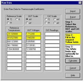 您了解了 MET/TEMP II 軟件的優(yōu)勢,,但未訂購具有 RS-232 端口的福祿克公司計(jì)量校準(zhǔn)部的儀器,,或者可能已錯誤地購買了能力欠佳的同類產(chǎn)品。 您不必沮喪,,因?yàn)槲覀円呀?jīng)為您提供了補(bǔ)救方法!我們的 TableWare 軟件包除了無法與 MET/TEMP II 數(shù)據(jù)庫連接,,可以完成 MET/TEMP II 中 Coefficients 和 Tables 實(shí)用程序能完成的一切操作。TableWare 是計(jì)算和生成數(shù)據(jù)的軟件包,,且使用手動輸入的數(shù)據(jù)。該軟件包更會節(jié)省您在計(jì)算上花費(fèi)的時間和金錢,,因此是個絕好的選擇。 TableWare 可計(jì)算 RTD、熱敏電阻和熱電偶的系數(shù)。它使用 ITS-90、IPTS-68、Callendar-Van Dusen 和多項(xiàng)式方程。TableWare 還可生成溫度對電阻、溫度比較率或溫度對熱電勢的對比表。 可輸入或?qū)胄?zhǔn)的電阻或電壓原始數(shù)據(jù)。TableWare 會生成系數(shù)、計(jì)算余值,,并生成有用的表格。 表格和系數(shù)可導(dǎo)出為文本文件,,以便在其他軟件包內(nèi)進(jìn)行分析。 TableWare 還可以使用能夠手動輸入的系數(shù)生成表格。不需要原始數(shù)據(jù)!