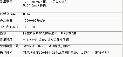 功能特點(diǎn): 1、 具有鑄件測(cè)試功能; 2、設(shè)有耦合提示、低電壓提示; 3、關(guān)機(jī)方式:手動(dòng)和自動(dòng)關(guān)機(jī)等功能(無(wú)操作三分鐘后); 4、最小值捕捉:可選擇顯示當(dāng)前厚度值或最小厚度值 5、數(shù)據(jù)存儲(chǔ):可存儲(chǔ)500個(gè)測(cè)量值和五個(gè)聲速值 6、聲速可調(diào):可利用已知厚度試塊測(cè)量聲速; 7、增益設(shè)置:具有高低增益設(shè)置功能 8、公英制轉(zhuǎn)換:可選擇mm或inch 9、背光顯示功能,多模式超聲波測(cè)厚儀,適合在光線不好的環(huán)境中進(jìn)行測(cè)量。